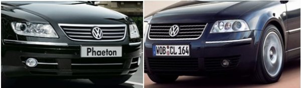 A harmadik, nem kevésbé fontos tényező az autó műszaki paramétereivel függ össze. Akkor, amikor az Audi 8 már nagyobb részben alumíniumból készült – és ez a körülmény rendkívül komoly súlycsökkenést, következésképpen jobb gyorsulást, kisebb fogyasztást eredményezett –, a Phaeton acélkarosszériás volt, és bizonyos típusai közel három tonnát nyomtak. Továbbá, a koncepció hiába volt erős, az autó körüli esztétikai óvatoskodás megbosszulta magát. Küllemre ugyan sokkal megnyerőbb volt, mint a pöffeszkedő bálna – a „csótány” BMW-ről ne is beszéljünk –, de ezt részben azzal érte el, hogy a VW vezetősége a VW Passat kispolgári vagy „álpuritán” mentalitását erőltette rá külsőleg a gigászi méretű, több mint öt méteres luxuslimuzinra. Ennek következtében az autó úgy nézett ki az első facelift előtt, mint egy nagyra nőtt VW Passat. Gyakorlatlan szemmel nem is lehet különbséget tenni a két autó frontja közt.