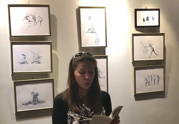 A kiállítást Ruff Orsolya nyitotta meg, s a beszédével bevezetett bennünket a mese világába: „Jean-Claude Mourlevat kötetének címszereplője útra kel. Ez idáig klasszikus mesei toposz, csakhogy ő a mesebeli szabólegényekkel meg legkisebb királyfikkal ellentétben nem azért vág neki a világnak, hogy szerencsét próbáljon. Jakabak szerelmi bánatában fut világgá.”