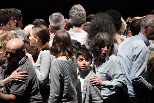 A közönség ezúttal nem bársonyszékből nézi az előadást. A teherliftből kiszállva egy csupasz teremben találjuk magukat, tele emberekkel, akikkel együtt minket is letartóztatnak, akikkel együtt végigéljük a reményt, a félelmet, a fájdalmat, a kiengesztelődést. A szürke ruhák, fehér fények, archív felvételek a dokumentumfilmek világa felé vezetnek. Elsőre úgy tűnik, újabb főhajtás, megemlékezés a koncentrációs táborokból soha vissza nem térő áldozatokról, de több ennél. Egy idős férfi szívébe látok bele, az ő emléktöredékei, gondolatai, érzései járnak át Moody zenéjébe öltöztetve.