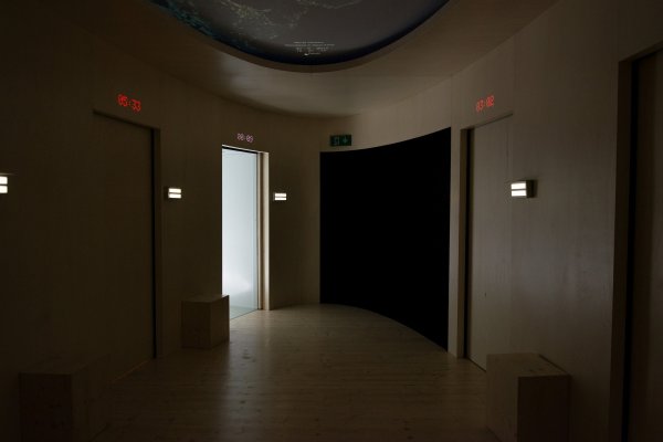 A Hagyaték látványtervezője, Dominic Huber oldalról és felülről is zárt dobozt álmodott meg, ami első látásra egy minihotel hangulatát kelti. A folyosó plafonján egy világtérképet helyezett el, amin egy szimulátor fehér, fel-felvillanó pöttyökkel jelzi azt a pontot, ahol valaki éppen meghal a Földön. A folyosó két oldalán négy-négy szobát rendeztek be a nyolc történet számára. A nézők tetszőleges sorrendben látogathatnak meg egy-egy fülkét, az önzáródó ajtók szabályozásával. Minden helyiség bejárata fölött visszaszámláló áll. Ha odabent lejár az idő, kinyílik az ajtó, és fél percig nyitva marad, amíg a 6-8 néző megcserélődik. A helyszín egészén uralkodó félhomály, a szűk szobák, a vékony falak miatt átszűrődő elmosódott hangok, a visszaszámlálók, és a plafon szimulátorának látványa erősen megteremtik a kriptaszerű hangulatot. Mi pedig sorra járjuk a szobákat, amelyek mindegyike különböző eszközökkel egy számunkra ismeretlen személy emlékét őrzik.