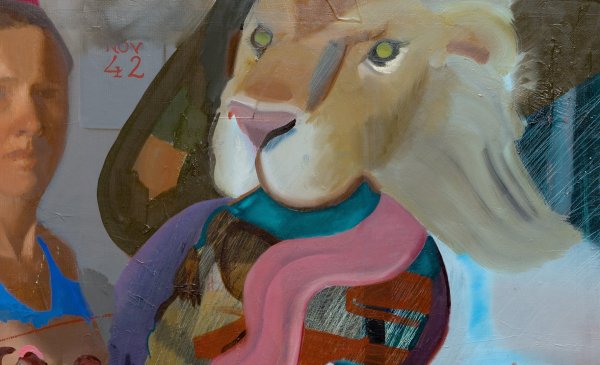 Kaliczka Patrícia: Kaliczka Patrícia: Szív és pénz fúziója. Részlet, 2019–2020, olaj, vászon, 100 × 80 cm. Fotó a művész és a Viltin Galéria engedélyével