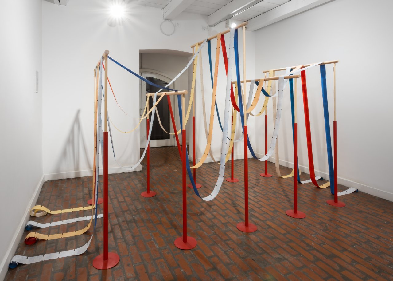 A Korlátok a fejünkben című tárlaton is szerepelt már a Limits (2019), fából-akrilból-vasból készült installáció. Az olimpiák magasugrói által használt lécekre emlékeztető elemekből és az ezekre felaggatott, a földre lelógó színes szalagokból álló alkotáshoz is többféle módon közelíthetünk. Egyrészt a ritmikusan váltakozó magasságban elhelyezett rudakkal az alkotó kedélyállapotunk változását tükrözi, amely egyszer lent van, máskor fent, azaz hol negatív, hol pedig pozitív. Másrészt installációjának papírcsíkjai – a művész értelmezése szerint – külső korlátaink és a bennünk élő gátak fizikális manifesztációira fellógatva „rajzolnak ki” különböző függvényeket. A bankautomata bizonylati papírcsíkjai egy prózaibb értelmezést is sugallnak: mindennapi megélhetésünk allegóriájaként is értelmezhetők.