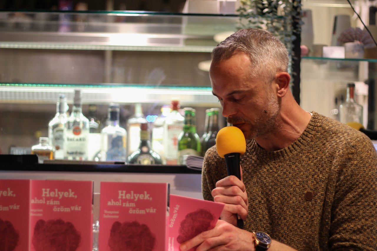 Zárásként még felolvassa csevegésről szóló versét, mely az idegenség-tapasztalat kezelési stratégiáira reflektál. Ennek kapcsán szóba kerül az is, hogy a költőség kisebbségi identitásként tételeződik Veszprémi számára. A slam körébe tartozó szövegeit ma már klisésnek látja, ezért egy sem került be közülük a kötetbe. Nem csak slam-, de lmbt-kötetet sem akart írni, hiszen ő más hagyományok felől érkezik. Szerette volna elkerülni, hogy a kritikusok pusztán egy-egy címke mentén olvassák azt, amit letesz az asztalra.