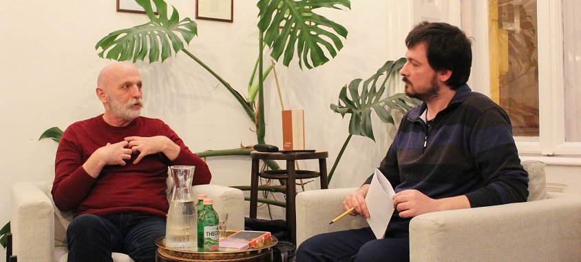 Juhász Tibor kezdésként a szép számmal összegyűlt hallgatóság azon tagjaihoz szólt, akik még nem ismerték a regény kontextusát, és röviden összefoglalta számukra a Visky-család történetét. A református lelkész édesapát az 1956-os megtorláshullám következtében bebörtönözték, feleségét és hét gyermeküket – köztük az akkor kétéves Andrást – pedig a Duna-deltába internálták. A fogság az évek során a szerző eddigi életművének legmeghatározóbb témájává vált: költői, valamint színházi tevékenysége mellett első regényében is ez a tapasztalat artikulálódik. Juhász szerint a Kitelepítés a korábbi műveket tekintetbe véve a pálya kulminációs pontjának tekinthető. Ezzel kapcsolatban arra volt kíváncsi, hogy hogyan éli meg Visky András a sikert, illetve azt, hogy a könyv népszerűségének köszönhetően számtalanszor újra szembesülnie kell az eseményekkel, és újra kell mondania a velük történteket.