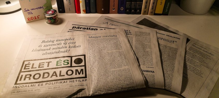 Van itt minden, mint a karácsonyfán, ahogy nagyanyám mondaná, és ahogy jövő héten mondani is fogja. Miután feldíszítjük, és leülünk az ünnepi asztalhoz. Az Élet és Irodalomé már haptákban áll, kapható az Írók boltjában és az újságárusoknál. Úgy gondolom, számos díszítőelemére szeretettel fogok gondolni az odahaza eltöltendő ünnepek alatt.
