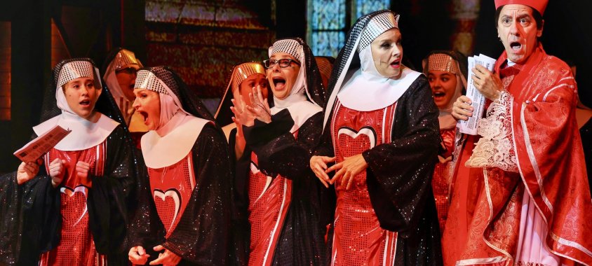 Az 1992-es zenés vígjátékban a Sister Actben Whoopi Goldberg, Maggie Smith és Harvey Keitel jelentek meg a vásznon, az alkotás az 1990-es évek egyik legsikeresebb vígjátékává vált, 1993-ban az Egyesült Államokban a legtöbbet kölcsönzött film volt, mert akkor még videóztunk, nem letöltöttünk és streameltünk. Bill és Cheri Steinkellner történetéből Alan Menken zenéjével, Glenn Slater dalszövegeivel musical született, amelynek premierjére 2006-ban került sor, majd 2009-ben a londoni Palladiumban, 2011-ben a Broadwayn is volt bemutatója. (Alan Menken szerezte – többek között – a Kis hableány, a Szépség és a Szörnyeteg, a Pocahontas és a Rémségek kicsiny boltja zenéjét is).