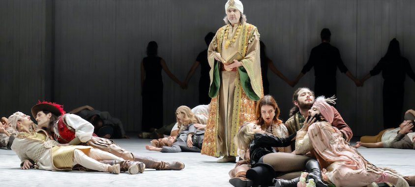 A német rendező munkáiban jól megszokott elegáns, letisztult színpadra Loy tökéletesen élő világot is teremt, a főszereplőktől a kórus tagjaiig maradéktalanul élénk, finoman kidolgozott színészi játékkal, az apró gesztusokkal–interakciókkal plasztikusan felrajzolt érzelmi és viszonyrendszerekkel, Darío és Benamor nemükhöz „méltatlanul” feminin, illetve maszkulin viselkedésének komikusan, már-már karikaturisztikusan elnagyolt, de elképesztően szórakoztató ábrázolásával. Javier Pérez koreográfiája a főszereplőket eltúlzott igények nélkül, de kellően látványosan, ügyesen és ötletesen mozgatja számaikban, a nyolcfős táncos corps pedig a janicsárok balettbe- és kilépőitől a hercegek karakteres csapatain át a II. felvonást záró Danza del fuego kortárs számáig elképesztő energiával, kiválóan teljesít.