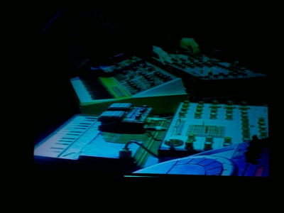 Ezután kezdett csak igazán beindulni a műsor. A koncertfelvételekről ismert hatalmas tükör aláereszkedett a plafonról, betekintést adva a Jean-Michel laboratóriumba, ami kb. hét, körben elrendezett szintetizátorból állt. Ezen kívül is még jónéhány gépezet volt használatba helyezve, Jarre műhelye mögött pedig három ’munkaállomás’ állt, amiket zenésztársai kezeltek. Nem számoltam ugyan, hogy összesen mennyi hangszer lehetett, de a beharangozott ötvenes szám bőven megvolt.