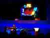 A koncert, akárcsak az album, finoman indult. Lebegős hangzás, már-már ijesztően kevés fény és szín. Attól tartottunk, hogy az interneten látottakhoz képest mi egy sokkal szolidabb előadást kapunk, ám a színek egyre csak gyarapodtak. Tökéletesen adagolva követték a hullámzó hangokat, a kivetítőn pedig nyomon követhettük az őrült professzort, aki ide-oda rohangál a laboratóriumában, és valami idegen, nem evilági dolog életre keltésén munkálkodik. Egy patológus precíz, de határozott mozdulataival nyúlt hangszereihez, miközben ki-kimosolygott a közönségre. A visszafogott villódzás után megnyíltak a függönyök, és a színpad mögött gigantikus kivetítő jelent meg, egy-egy színnel aláfestve a látványt. Az ügyködő Jarre és zenészei árnyalakoknak tűntek a nagy fényáradatban. A látvány minimalista és fantasztikus volt. Két tétel között Norbert is a színpadra vonult, és míg ő 'hang' nevezetű hangszerét püfölte, a szintimágus elszállós aláfestést improvizált. Az egyszerű dob és a futurisztikus gépezetek együtt, kellemes ambient-szösszenetet varázsoltak.
