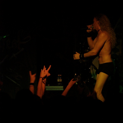 A bohóckodás folytatódott az Equilibrium alatt is, viszont itt már nagyon taszító volt számomra: azt talán még elviseltem volna, hogy az együttes tagjai alsónadrágban vonulnak be (különösen a szemrevaló basszusgitáros lány miatt), de az már egyenesen vérlázító volt, hogy a koncertet a klub lejátszójáról playbackelték. Jó, annyira nem háborodtam fel, elvégre ez a műfaj a metál popja - de azért mégiscsak pofátlanság volt a dobost leküldeni a színpadról (pedig az első számnál a Finntroll énekese bohóckodott a szett mögött)!
