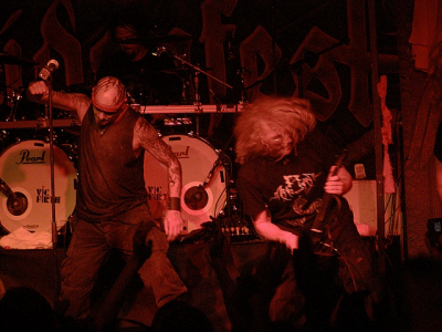Persze a többiek is örülhettek, hiszen a bozseválás után egy kis változatosság jött: és végül ez is zúzott, szóval csápolni, gajdolni itt is lehetett. A közönség zömének koncertélménye nem az együttes már-már spirituális történelem-zenéjének átélésétől lett felejthetetlen, hanem az énekes hol röhejesen bohócszerű, hol a végletekig elvetemült színészkedésétől (itt hozzátenném, hogy a Rettenthetetlenből lenyúlt arcfestés inkább vicces; s ha a zene nem lenne olyan jól megkomponált, valószínűleg elcsúszott volna a középszerű black metál irányba). Sajnos, az előző együttesek már igencsak illuminált állapotban lévő tagjai itt is többször fellopakodtak a színpadra, hogy belerondítsanak a produkcióba – amit, néhány bajtársias vigyort és vállveregetést leszámítva úgy tűnt, az együttes tagjai sem vettek jó néven.