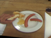 Aztán hátra sétáltunk – szerencsére! – az épület mögé, ahol találtunk egy barnára pácolt fabódét. Belül sötét volt. Falait fehér krétával összefirkálták mindenfélével, főként feliratokkal. Először csak a lécek közötti réseken beeső fénycsíkok világítottak. A helyiség közepén állt egy deszkákból tákolt asztal, két oldalán sörpaddal. És itt kezdődött az igazi kaland! Egyszer csak felülről megvilágította egy vetítő az asztal lapját, pont akkora képpel, amekkora annak felülete volt.