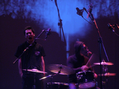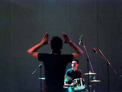 A Michael Fischer – Ken Okami páros produkciója kiváló lehetőség arra, hogy a kortárs kísérleti zenék másik, fontos aspektusát is elővegyem: nagyon sokszor a performansz és a zenei előadás egy és ugyanaz. Itt ez azt jelentette, hogy az összetett digitális visszacsatolásokból és digitális játékból álló produkció hangszerei fénycsövek voltak (bár a neves hegedűs-szaxofonos Fischer itt-ott szaxofonon is besegített). A koncert vaksötétben kezdődött, és egészen a végéig kizárólag a fénynyalábok világítottak, azok is csak akkor, amikor Okami hangokat, azaz zajt csiholt belőlük. Rendkívül látványos, sőt mindjárt teátrális volt a kezdés – engem arra emlékeztetett, amikor a lézerszínházban felhangzik a Carmina Burana O Fortunájának első néhány taktusa, csak itt fülsiketítő zajárról és vakító fénysugarak villogásáról beszélhetünk.