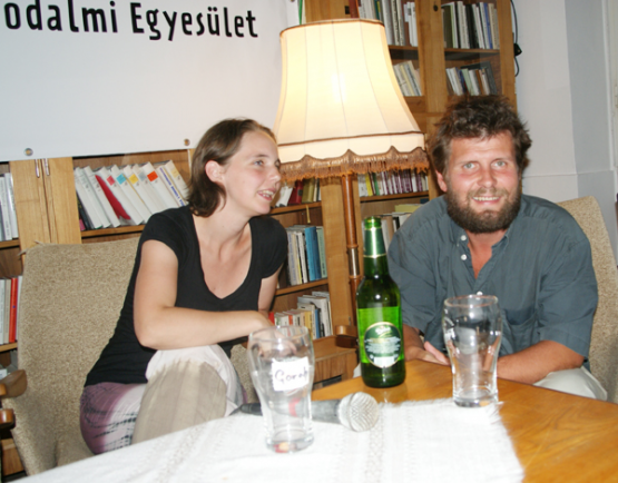 Heves vita alakult ki a gyermekirodalom, vagy még inkább a gyermekszínház kapcsán, olyannyira, hogy kedvem lett volna bekapcsolódni, bár túlzás lenne azt állítani, hogy a téma szakértője lennék. Az ellentétes véleményeket időnként Tamás Zsuzsa szívből jövő kacajai olvasztották egybe. A beszélgetés legalább annyira volt szórakoztató, mint elgondolkodtató, kellően megalapozta az ittlétünket. Már önmagában a cím is sokatmondó, figyelemfelkeltő volt: Pöttyös bögréktől a Szorongás orfeumig. A pöttyös bögréket az asztal egyik vége (Tengely Gábor személyében) képviselte, aki Boldizsár Ildikó Amália című meséjének színpadra alkalmazott változatával nyerte el az idei gyermekszínház találkozó első díját. És hogy a gyermekirodalom létjogosultságát a felnőttek világában is bizonyítsam, számomra az est egyik csúcspontját a Gábor által előadott mese jelentette. Nem lenne rossz – fogalmazódott meg bennem a gondolat –, ha a táborban minden napot egy esti mese zárna. De a történeten túl a legjobban az a bábszínházi megoldás keltette fel az érdeklődésem, hogy a bölcsész-királyfi és a boszorkány szerelmi párbeszédében a bábokkal játszották el a test megnyilvánulásait, míg az érzelmi-értelmi dialógusba a „valódi” színeszek léptek be. Az asztal másik végén ült Peer Krisztián, a Szorongás orfeum alkotója, akinek minden hagyományt és szokást felülíró, eredeti látásmódjáról újfent meggyőződhettünk. Szerinte a gyerekek színházi élményeinek befogadását hátráltatják az olyan konvenciók, mint például az, hogy fegyelmezetten kell végigülniük egy előadást, és előírásszerűen követni a tanár nénik és színészek utasításait. Az egyik legsarkalatosabb vitája a műsornak éppen ebből indult ki: arra keresték közös erővel a választ, hogy mi a követelménye a „jó” gyerekszínháznak, és miért nincs több gyerekdarab, gyerekelőadás. A beszélgetés legtöbb szereplője egyet értett abban, hogy erre márpedig nagy szüksége lenne. Elhangzott egy segélykiáltás is a nézők felé: „Írók, írjatok több gyerekdarabot!”. De hátráltató tényezőt bőven tudtak sorolni, személyes tapasztalataikból. Kevés pénzt hoz (miért kezdődik minden ezzel?), a színházi rendezőknek nem jelent igazi kihívást, a vezényszóra kirendelt bérletes gyerekek rendetlenek. Szabó Borbála hiányolja a gyerekek kellő felkészítését is az előadásokra: keveset olvastatnak velük, vagy olvasnak nekik a szülők, sőt – itt Krisztián újra bekapcsolódott – már a közös beszélgetések is hiányoznak az otthonokból. Bori Varró Danival közösen írt egy gyerekdarabot, a Líra és epikát, melynek különlegességét a próza és a versforma egy darabban való alkalmazása, illetve mind a bábszínházban, mind pedig a „rendes” színházban való bemutatása adja. Bori szerint, a szokásos meséktől eltérő szöveg már gondot okozott a színházban a gyerekeknek, és ezen a megfelelő felkészítéssel lehetne segíteni.