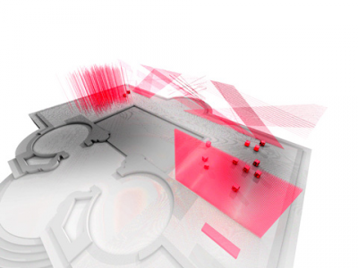 Nehéz a kiállítótérről beszélni, és nehezen is tudok róla még beszélni, mivel az installáció még most alakul. Van egy elképzelésünk a térbeni megjelenésről, de konkrétumokat is tudok mondani: a kiállítás és a kiállítótér középpontjában egy film fog peregni, amit mi készítünk el, és amiben építészek fognak rajzolni, nem csak magyarok, hanem külföldi építészek is, pontosan azért, hogy ez a közös felület meglegyen. Meg fogjuk kérdezni az építészeket, hogy mit jelent számukra a rajzolás folyamata, és ezen belül egy vonalnak a meghúzása. Előfordulhat, hogy sokan azt mondják, számukra a vonal nem jelent semmit, a rajz nem jelent semmit, tereket alkotnak. De az is elképzelhető, hogy sokan fogják azt mondani, hogy a vonal számukra szerkesztés, kontroll, sőt lehet olyan is, akinek a számára a rajz és a vonal húzása maga az idea.