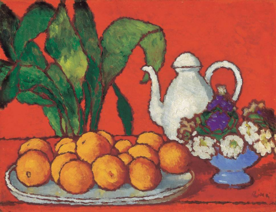 A kiállítás leghíresebb darabja, mely köré az egész tárlat szerveződött a Maszkos önarckép, mely a Városi Művészeti Múzeum tulajdona. Az idén száz éves kép, és párja, a magángyűjteményből (Kieselbach Galéria) kölcsönkapott Narancsos csendélet a két legfontosabb kép a kiállításon. A csaknem száz darab alkotás fele festmény, fele rajz, mindegyik 1900 után készült. A többek között a Magyar Nemzeti Galériától, a kaposvári Róma-villától, Debrecenből, és magángyűjteményekből összeállított kiállítás méltó bemutatása a magyar avantgárd nagyszerű festőjének.