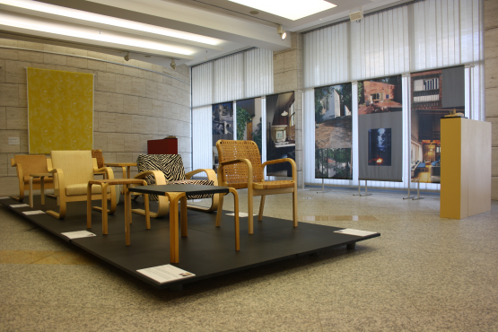 A designtárlaton egymásra csúszni látszanak a különböző szekciók, falak ugyanis ezúttal nem tagolják a teret. Nyilván tudatos döntés eredménye ez, amely Aalto tiszta világos formáiból próbál egy elválasztások nélküli, összekapcsolódásokból adódó rendet teremteni a közegben. Ám kétségtelen, hogy egy jóval nagyobb, több helyiségre tagolt kiállítótérben jobban érvényesülnének az installált tárgyak, erősebben koncentrálódna a figyelem az épületeket bemutató plakátokra és a rövid leírásokra.