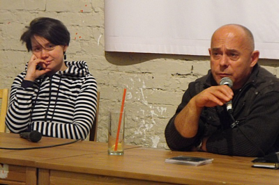 És Izsó Zita beszélt drámája gyilkos Mádi Szabinájáról, hogy miért gyilkos és miért Szabina, Kele Fodor Ákos új kötetének alcímeiről, melyek alcímek, és felcímeiről, melyek sorvégek. Krusovszy Dénes hiányokról, többletekről és hogy hol veszítik el végtelen titkukat a „bokrok közötti suttogások”, Jász Attila pedig a költészettel való bíbelődésről, és arról, van-e gyerekversihletett állapot, és hogy köze van-e ehhez a gyerekeknek. Ekkor ettem egy, a nyers téglákkal, csupasz asztalokkal és málladozó falakkal nem összeegyeztethető keltkiflit, nem simát, nem békönöset, hanem borsos-káposztásat, mielőtt Czapáry Veronika leült volna Szirtes Jánossal beszélgetni a performanszművészet esztétikájáról. Mutasd meg! Ez nem színház, nem repetál és reprodukál, ezek szertartások, rítusok - már hallod a sámándobot – ismételhetetlen önodaadás, ennek tétje van. Az autentikus performerek az üres hűtőszekrények, feldarabolt húsok, belsőségek moderátorai, papjai, bohócai. A véletlenek lovasai, mint a sztreccsnadrágját a jó megjelenésért folyton-folyvást szűkítő lány, akinek végül elszakadt nadrágja alól kilátszó fehér bugyija vált transzcendens jelenéssé.