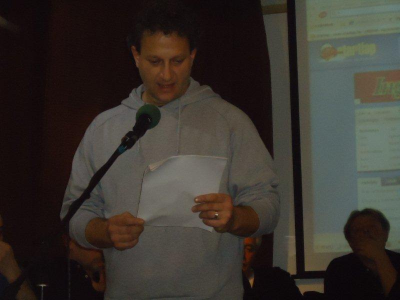 Kukorelly Endre úgy tartja, hogy kellemesebb itt felolvasni, mint máshol, saját Vojtina-redivivusával kezdi, ott tart, hogy „Hát, nem sok pinát nyalt, akármi édes”, amikor valaki hátulról hangosan, kétszer beszól, hogy vége a sajtószabadságnak, miről beszélünk, de Kukorelly nem adja fel „A te hazád!/ Meg az én hazám is, apánk faszát”, a végén Petrivel üti el: „Gyuri nagyon undoritó,/ nem áll távol Tandoritó'”.