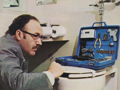 Jelenetkép a Magánbeszélgetés című filmből (Walter Murch supervising editor, sound editor, sound montage, sound re-recording mixer posztokon dolgozott)