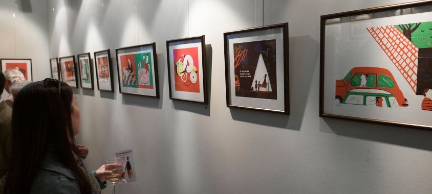 A könnyed és vidám életstílushoz persze élénk színek dukálnak, Catarina Sobral képein elsősorban a piros és a zöld dominál. Ahogyan azt Szilágyi Gábor művészettörténész is megemlítette megnyitó beszédében, a rajzok a hatvanas évek kerek, naiv, gyermekinek tűnő képi világát idézik meg. Másrészt az illusztrátor más művészettörténeti korszakkal is játszik: a piknikező nagyapa és társai Manet Reggeli a szabadban című festményére emlékeztethetnek bennünket. Ráadásul a képre illesztett come il faut felirat hozzáad még egy plusz ironikus jelentésréteget, hiszen a francia impresszionista képe saját korában nem igazán volt illendőnek nevezhető.