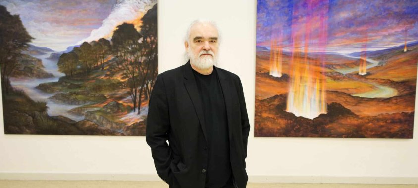 A művész kötődik a régióhoz, hiszen a Képzőművészeti Főiskola előtt a szegedi Tömörkény gimnázium művészeti tagozatán tanult. A közönség az elmúlt években a sokoldalú művész festői megújulásának is tanúja lehetett. Korábban markáns, portrészerű sorozatai fejeket ábrázoltak, az elmúlt években tájképekkel jelentkezik az országos tárlatokon, melyek egyrészt merítenek a 16-17. századi francia és itáliai ideáltájképek hagyományaiból, másrészt hordozzák magukban a kortárs művészet különböző aspektusait is - fejtette ki a művészettörténész.
