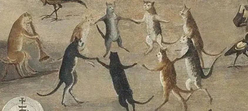 Táncoló cicák - részlet a „The Witches Cove Creek” című 16. századi flamand festményből,
