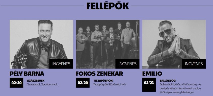 A fellépők között megtalálható Pély Barna, a Fokos zenekar, Emilio, a Korál, Radics Gigi, a Piramis, a Sugarloaf, Szandi, akik mellett feltörekvő előadók is színpadra lépnek, többek között Gudics Máté, Tóth Abigél vagy Kökény Dani.