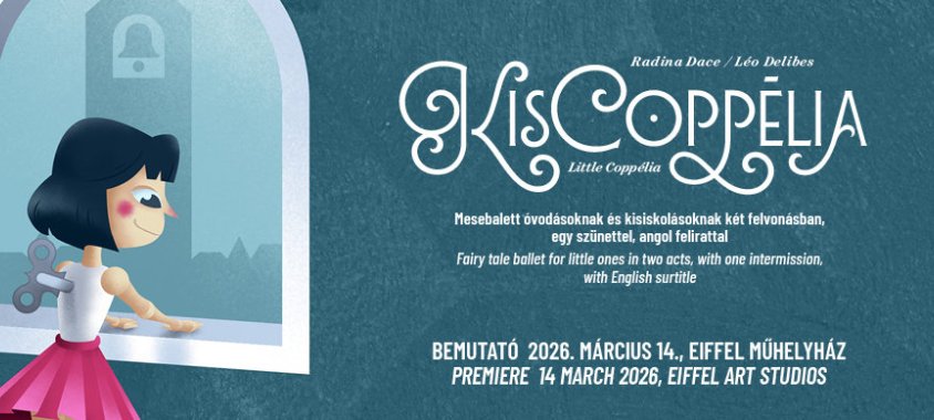 Március 14-én mutatja be a KisCoppélia című mesebalettet a Magyar Nemzeti Balettintézet az Eiffel Műhelyház színpadán. A produkciót az intézet művészeti vezetője, Radina Dace állítja színpadra, elsősorban kisiskolás közönség számára.