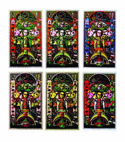 Géza Szöllősi: New Deities: Skull and Bones, 2010, screenprinting colored by hand, 50x40 cm